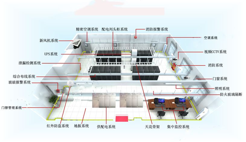 IDC機房設計需使機房環(huán)境滿足設備和人員對溫度、濕度、潔凈度、電磁場強度、噪音干擾、電氣安全、電源安全、防水、抗震、防雷擊和接地等要求。