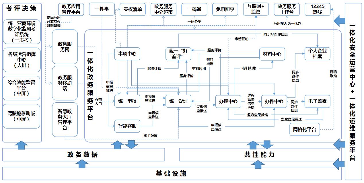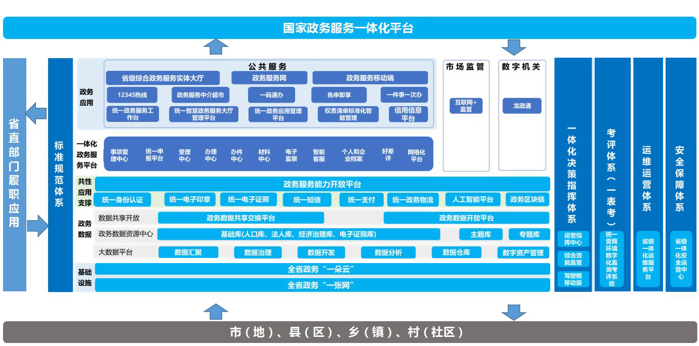構建整體協(xié)同聯(lián)動的系統(tǒng)架構,形成“上接國家,下連地方,縱向貫通,橫向協(xié)同”的統(tǒng)一數(shù)字政府架構。