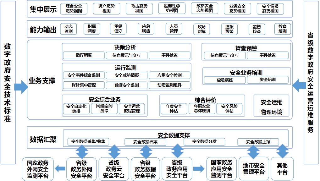 一體化安全運營中心架構設計,是連接省內(nèi)各市(地)、政務云、政務網(wǎng)、政務數(shù)據(jù)、政務應用安全運營(管理)中心,依托“數(shù)字政府安全運營運維服務”,形成數(shù)字政府整體的安全運營體系。